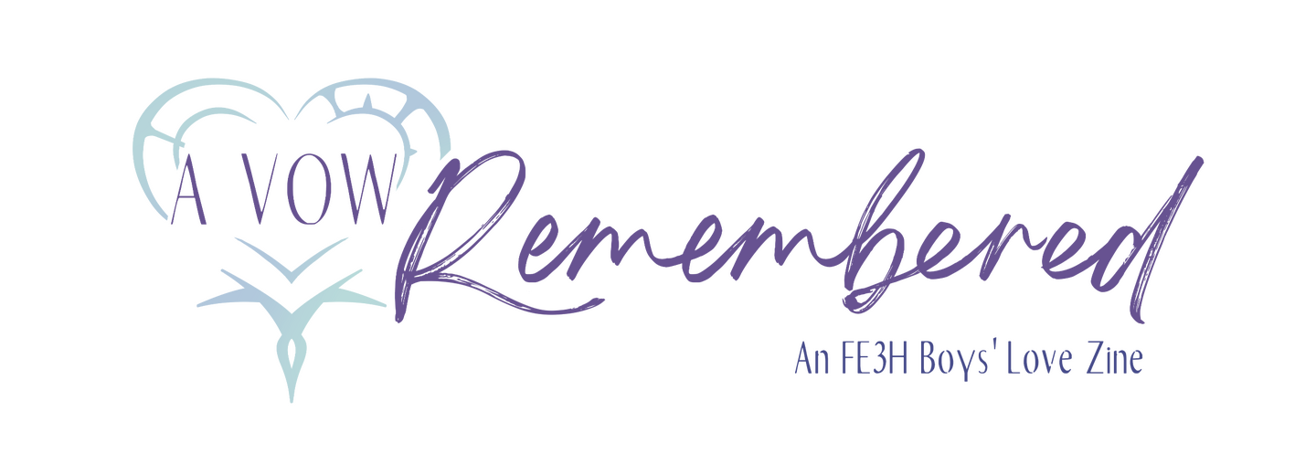 A Vow Remembered: An FE3H Boys' Love Zine is a collaborative project exploring and celebrating various MLM ships in the game Fire Emblem: Three Houses. It will feature art, writing, and merch by various creators.